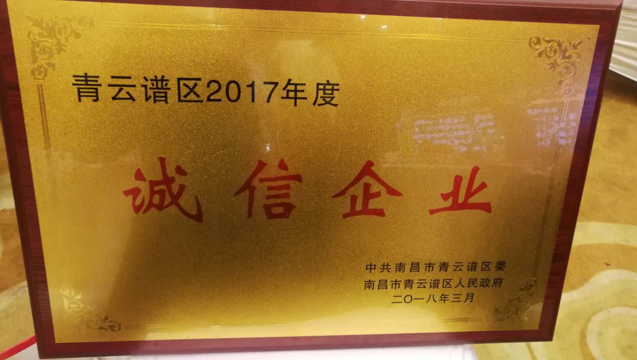 南昌尚格荣获“南昌青云谱区2017年度诚信企业”称号