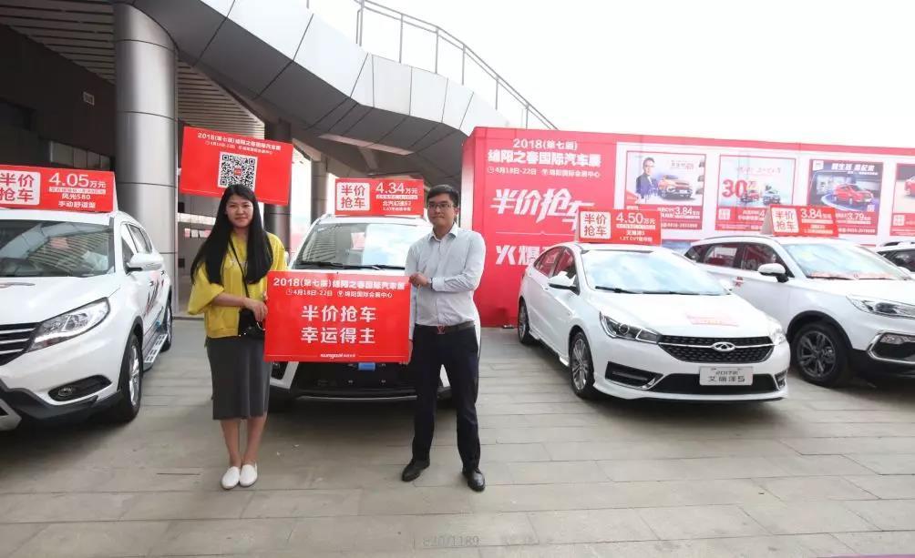 通过展前网络报名,在4月22日上午10:00,所有参与半价抢车的观众聚集在活动现场大舞台,经过几轮扣人心弦的激烈角逐,最终在上午11:00选出幸运得主谢女士,她以一半的车价抽中半价车型——北汽幻速S7,羡煞终人。