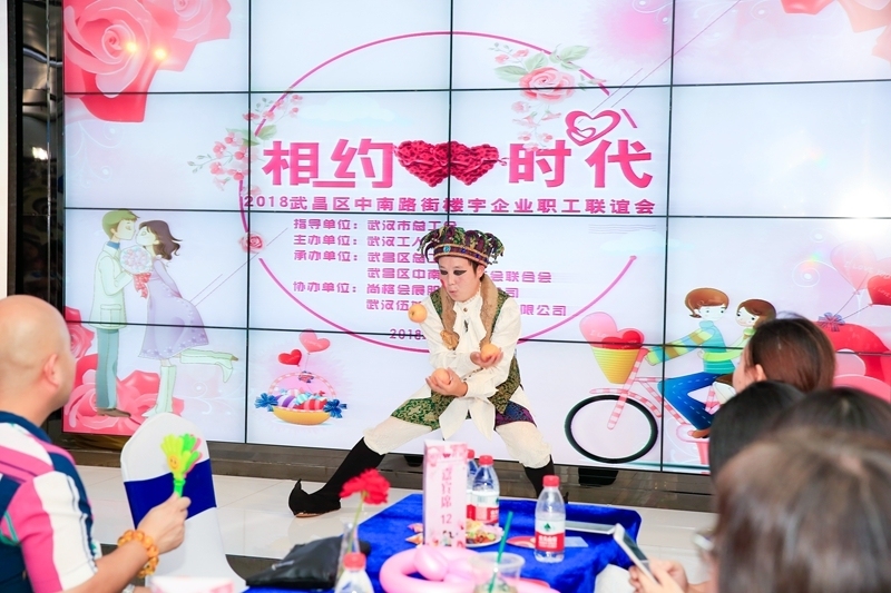 在相亲会进行的中间,来自武汉杂技团的国家一级演员王涛老师还给大家带来了精彩刺激的杂技表演,将现场气氛推向了高潮。